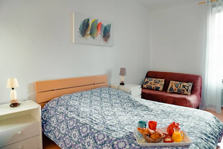 1 manželská posteľ, 1 rozkladací gauč
