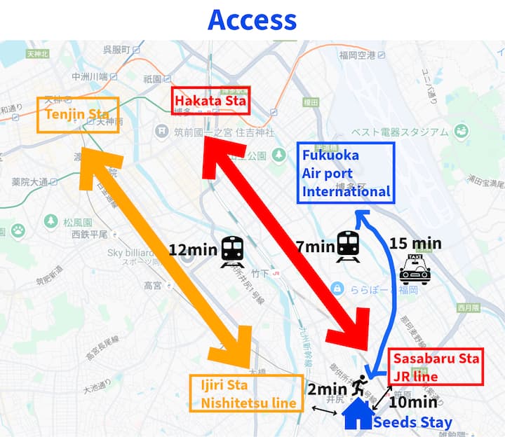 2 minúty chôdze od stanice, 12 minút od Tenjin, 27 m², nová budova, pohodlný priestor, bezplatné parkovanie, výhodné pri dlhodobom prenájme, Seeds Stay