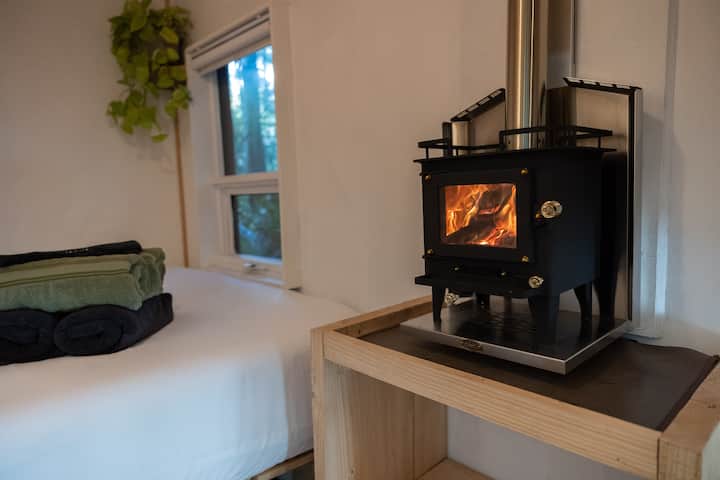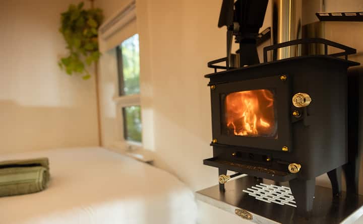 K dispozícii sú úplne nové drevené kachle s okienkom, cez ktoré môžete vidieť oheň z postele. K dispozícii je aj radiátor s termostatom a kabína je dobre izolovaná, takže je veľmi teplá a útulná.