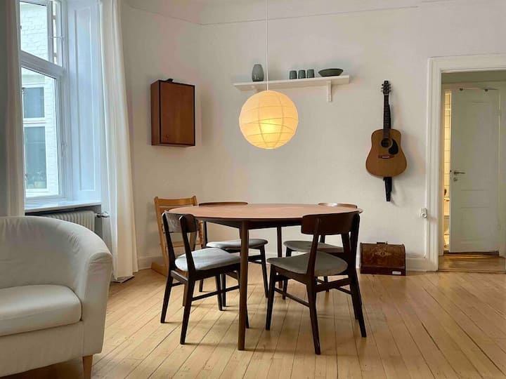 Sme rodina dvoch dospelých (Allan a Mia) a troch detí. Kúpili sme náš susedný byt a spojili sme sa do skutočne jedinečného a veľkého bytu, ktorý milujeme, ale okrem iného si vyžaduje farbu, čas a úsilie predtým, ako bude dokonalý. Keď prenajímame, často sme v našom karavane (asi 60 km od neho). V maximálnej možnej miere sme však vždy k dispozícii pre pomoc a rady. A ak momentálne nebudeme mať čas, vrátime sa hneď, ako to bude možné.