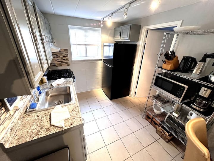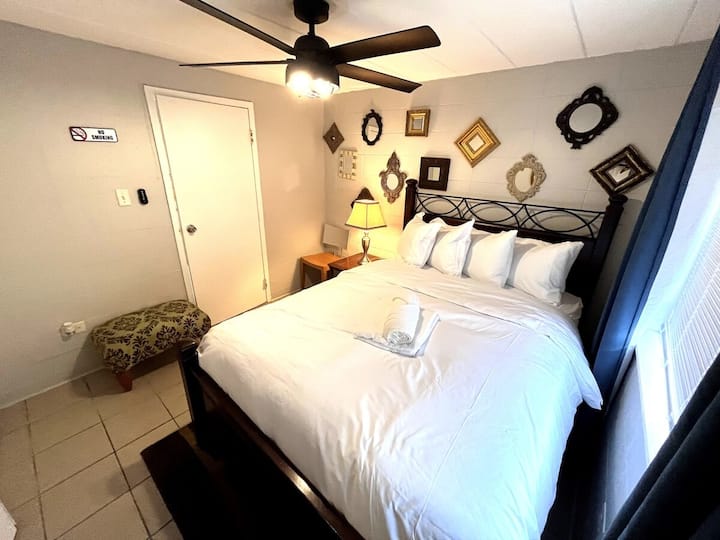 Teraz sa obráťte na slona v miestnosti: budovu a okolie. Priznávame, že to nie je najkrajší klenot v meste a štvrť môže byť opísaná ako „vnútorné mesto“ (má charakter, však?). Ale hej, život je o objatí zvláštností a hľadaní krásy na nečakaných miestach. A povieme vám, že cena, ktorú zaplatíte za túto ponuku, je často nižšia ako miesto na kempovanie na niekom dvore, takže čo môžete očakávať? Naozaj je to ako nájsť diamant v drsnom stave, až na to, že je to skôr útulný kútik v mestskej džungli. Navyše máte rušnú Commercial Ave niekoľko blokov na západ, kde je množstvo miestnych reštaurácií, podnikov, bánk atď.