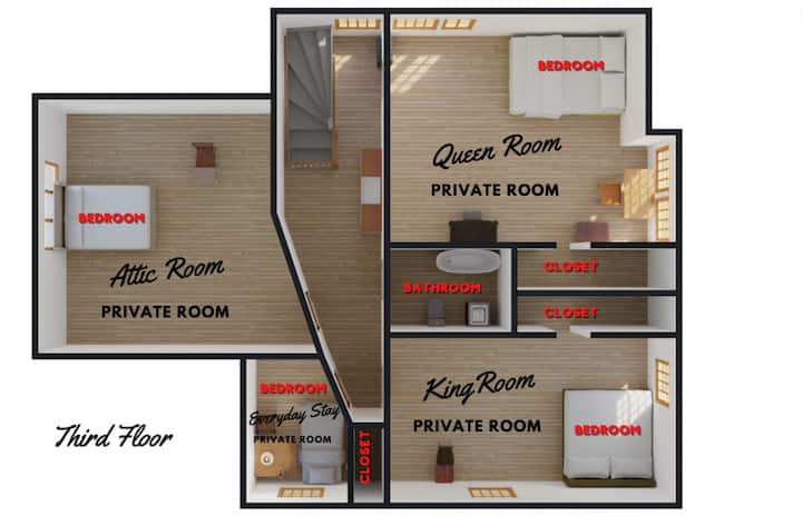 Zámky dverí: Toto je 120 rokov starý historický objekt, vonkajšie zámky dverí poskytujú hostia, nie hostiteľ. Ak potrebujete, kúpte si na Amazone „zámok na kľučku dverí“, stojí 20 USD. Na požiadanie pred pobytom alebo počas neho je možné na požiadanie nainštalovať retiazku vnútorných súkromných dverí.