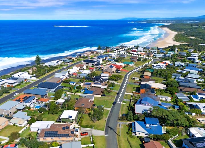 Blue Cottage je váš pobyt na pobreží, len 3 minúty chôdze od pláže Racecourse a v blízkosti Mollymook a Rennies. Hlavný dom je ideálny pre páry, rodiny alebo väčšie skupiny. Ponúka ubytovanie až pre 8 osôb (4 spálne, 2 kúpeľne) a voliteľný samostatný byt pre starších ľudí (manželská posteľ, rozkladacia pohovka, vlastná kúpeľňa) pre až 11 hostí. Užite si výhľad na oceán, rýchle Wi-Fi, viacero obývacích priestorov a priestrannú verandu s grilom – ideálne miesto na relaxačnú dovolenku na pobreží.