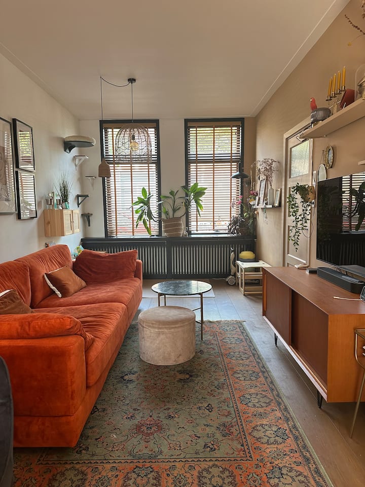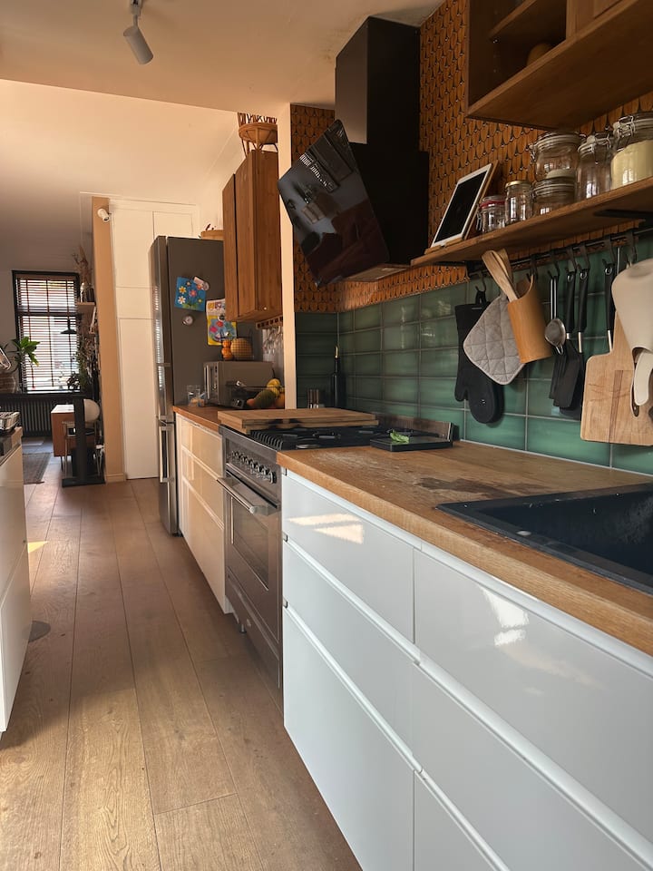 Vitajte v našom šťastnom úkryte v Haarleme! 🌞 Náš domov je ideálnym miestom pre rodiny, skupiny priateľov alebo kohokoľvek, kto miluje pohodlnú posteľ, slnečnú terasu a množstvo hier. S 3 spálňami, útulnou malou záhradou a strešnou terasou, ktorá je tak slnečná, že si budete myslieť, že ste v Španielsku, sa tu budete cítiť ako doma.