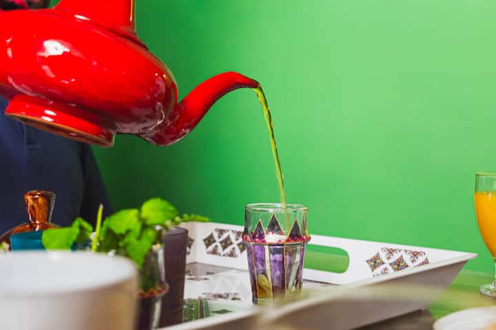 útulná izba v štýle Majorelle, krásny riád v Marrákeši