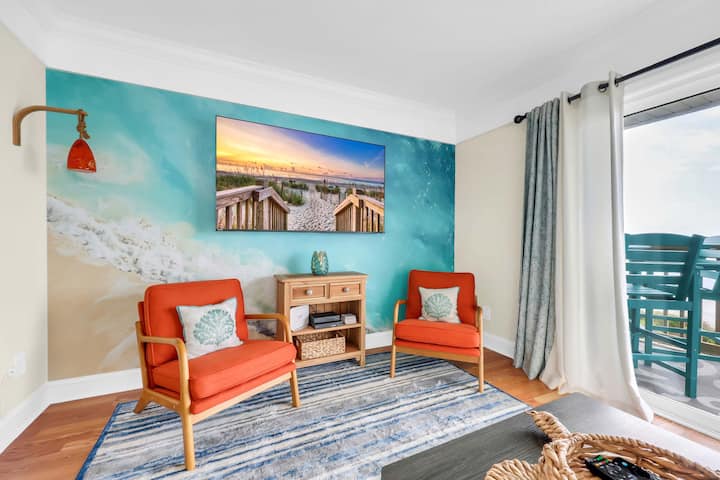 Beach Escape at Seafarer, ktorý sa nachádza na najvyššom poschodí Seafarer v North Myrtle Beach, je vaším sviežim útočiskom pri pláži s nádherným výhľadom na Atlantik. Tento kondomínium s 1 spálňou a 1 kúpeľňou ponúka súkromný balkón priamo pri oceáne, plne zásobenú kuchyňu a pokojné súkromie na najvyššom poschodí. Hoci tu nie je žiadny výťah, výstup do tretieho poschodia stojí za nádherný výhľad a pokojné miesto nad plážou.