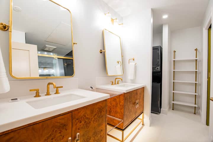 Kráčajte od Onyx Coffee, reštaurácií a parkov. Má manželskú posteľ + queen Murphy, luxusný dizajn, kuchynský kút, pracovný priestor, W/D a inteligentnú televíziu. Virtuálny vrátnik na dosah ruky. V prípade väčších skupín si rezervujte prepojenú priľahlú izbu 1 alebo nám pošlite správu a rezervujte si obe priľahlé izby.