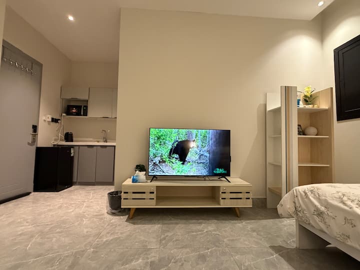 Izba s Wi-Fi, ktorá je vhodná na prácu.