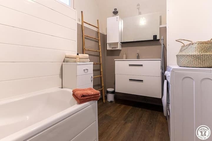 Naša očarujúca chata v Aydat, v srdci regionálneho prírodného parku Auvergne Volcanoes, vás privíta v pokojnom prostredí, v blízkosti slávneho jazera Aydat, ktoré je ideálne na kúpanie, prechádzky a vodné aktivity. Ideálne pre milovníkov prírody, pešej turistiky a pokoja. Tento domov, ktorý sa nachádza na prízemí nášho domu, je úplne nezávislý (vstup a samostatné vybavenie).