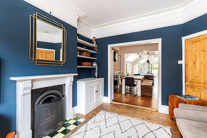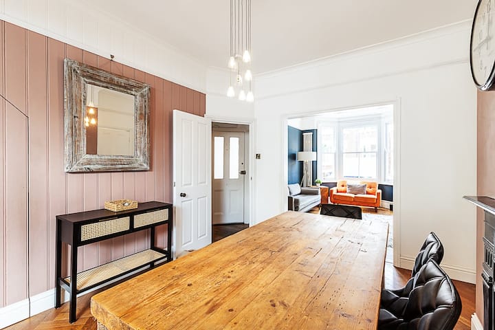Vitajte v tomto krásne štýlovom, priestrannom dome v srdci Peckham Rye – dokonalá zmes moderného pohodlia a klasického šarmu. Objekt je ideálny pre rodiny alebo skupiny a pohodlne sa v ňom vyspia až šiesti hostia s priestorom pre jedno ďalšie dieťa na rozťahovacej posteľke. Rozprestiera sa na troch poschodiach a ponúka uvoľnenú, domácku atmosféru s veľkorysými obytnými priestormi a premyslenými detailmi.