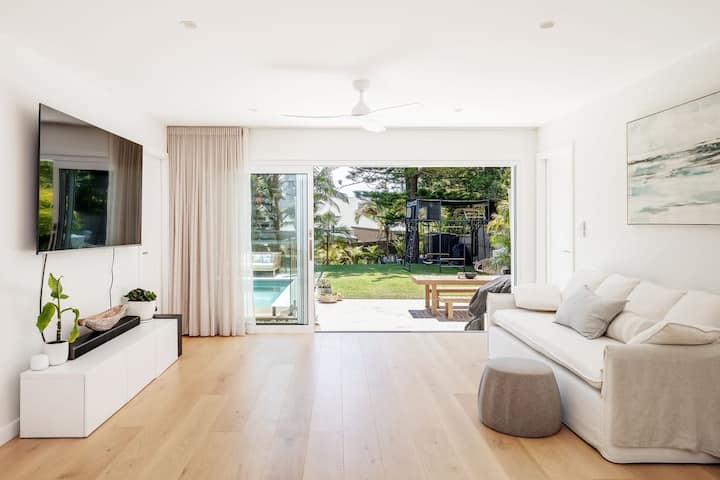 Vitajte v Bangalley pri mori, vašom luxusnom dovolenkovom dome v pokojnom prostredí pláže Avalon Beach. Táto dokonale zrekonštruovaná nehnuteľnosť je majstrovskou triedou uvoľnenej pobrežnej sofistikovanosti, ktorá ponúka bývanie v štýle rezortu s iskrivým bazénom na zemi, sviežimi pokojnými záhradami a množstvom priestoru na oddych a oddych. Pohodlne sa usaďte a oddýchnite si pri západe slnka nad balkónom, alebo sa prejdite na pláž Avalon Beach alebo Bangalley Headland. Táto pobrežná svätyňa má všetko, čo budete potrebovať na svoj ďalší dovolenkový výlet.