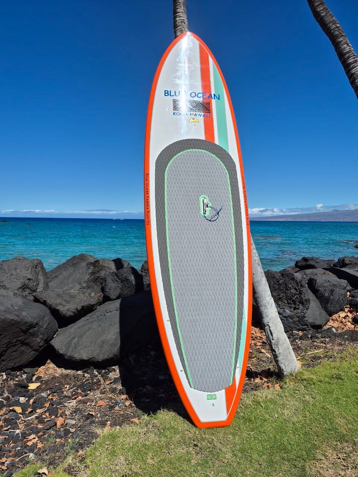Aktualizované: ponuka teraz zahŕňa stand up paddleboard plnej veľkosti, ktorý sa nachádza v klube Mauna Lani Beach Club – nemusíte s ním šoférovať. Stačí si priniesť pádlo a užívať si oceán.