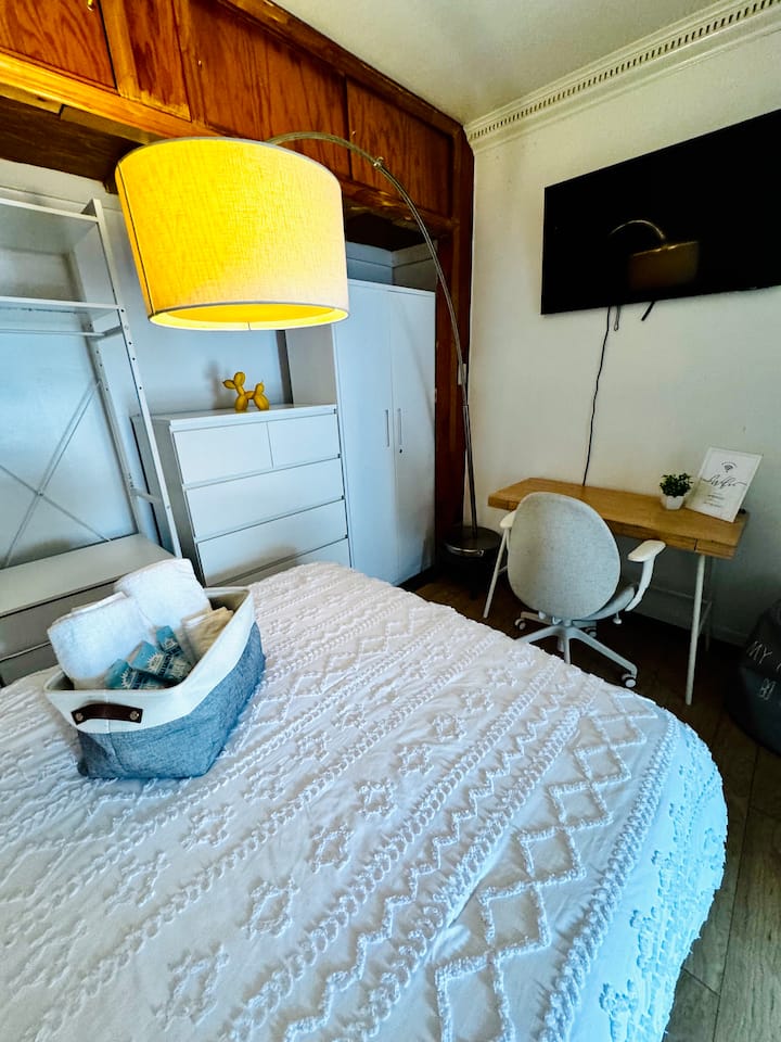 Izba s Wi-Fi, ktorá je vhodná na prácu.