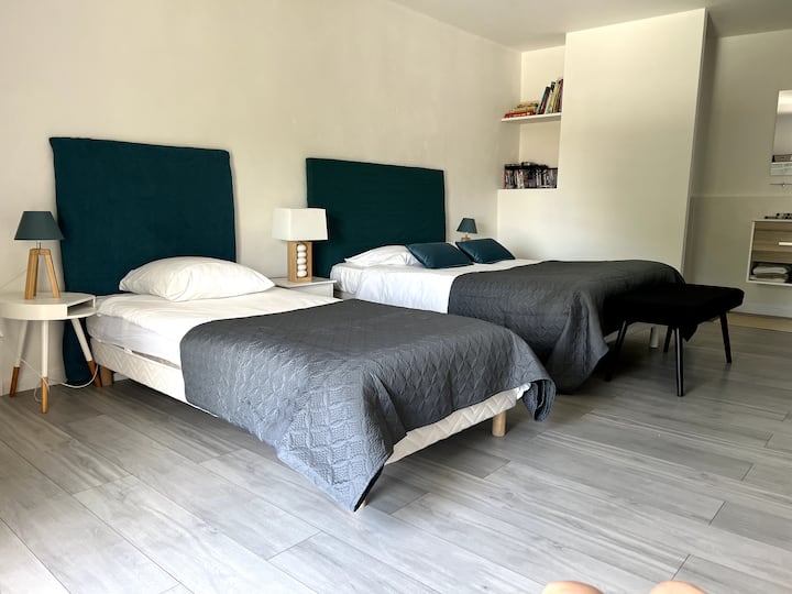 Izba s Wi-Fi, ktorá je vhodná na prácu.