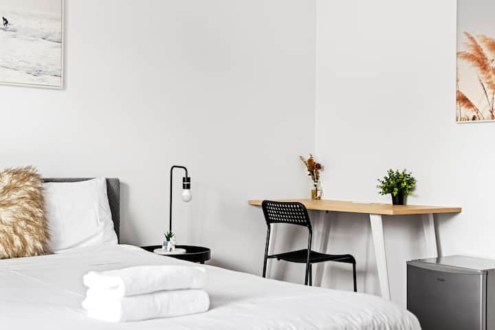 Hostia majú plný prístup do svojej vlastnej dvojlôžkovej spálne s vlastnou kúpeľňou, ako aj do spoločnej plne vybavenej kuchyne a útulných spoločných priestorov. Zostaňte v spojení s bezplatným Wi-Fi NBN a užite si uprataný domov so spoločnými priestormi upratovanými dvakrát týždenne. Pre skorý príchod alebo neskorý odchod je k dispozícii úschovňa batožiny. Objekt má bezpečný inteligentný zámok, takže sa nemusíte obávať o kľúče. Váš hostiteľ je prívetivý a ochotný, rád vám pomôže s akýmikoľvek otázkami, aby ste mali bezproblémový a pohodlný pobyt.