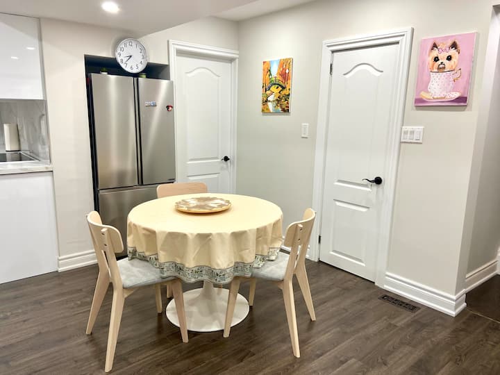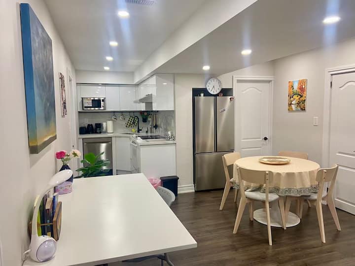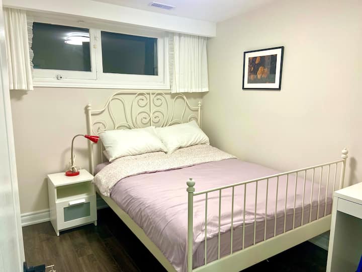 Apartmán v suteréne s manželskou posteľou a vlastnou kúpeľňou v blízkosti metra