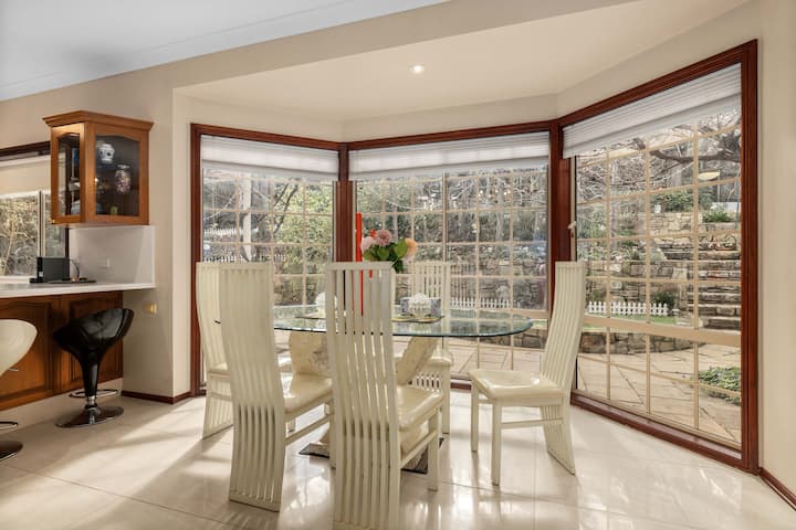 Tento klasický dom so 4 spálňami a 2,5 kúpeľňami sa nachádza v tichej a nádherne elegantnej ulici Fleetwood-Smith a ponúka dva obytné priestory, obrovskú záhradu a svetelné interiéry, ktoré ohromujú na každom kroku. Majiteľ ho miluje už viac ako 20 rokov a kombinuje nadčasový dizajn s moderným komfortom. Ideálne pre rodiny, skupiny alebo osoby na služobnej ceste, len pár minút od Gold Creek Village, kaviarní, parkov a centra mesta Canberra.