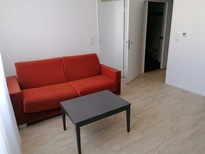 Moderný apartmán s rozlohou 42 m2 v pulzujúcej štvrti Left Bank v Rouene, ideálny pre rodiny alebo priateľov. Táto 2-izbová rezidencia s obsluhou ponúka svetlú obývaciu izbu s rozkladacou pohovkou, jedálenským kútom, televízorom, Wi-Fi a samostatnou spálňou s manželskou posteľou. Plne vybavená kuchyňa, moderná kúpeľňa a zahrnutá posteľná bielizeň a uteráky zabezpečujú pohodlný pobyt. Vychutnajte si kúpele na mieste, kryté parkovanie (za poplatok) a ľahký prístup k verejnej doprave a atrakciám v centre mesta.