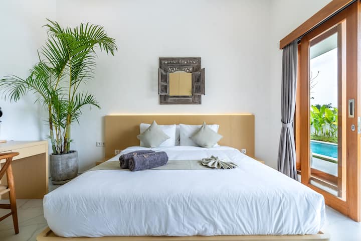 Zažite čaro Bali 🌴✨ v modernej vile uprostred pulzujúcej oblasti Canggu – len kúsok od pláže Echo Beach 🌊. Táto súkromná oáza, ktorá je ideálna pre turistov aj digitálnych nomádov 🌍💻, pohodlne ubytuje až 6 hostí 👥👥👥.