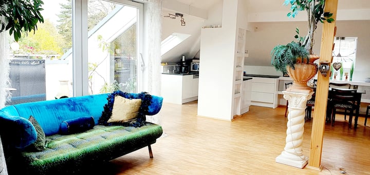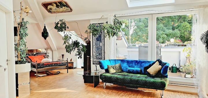 loftový podkrovný byt s výhľadom na park
