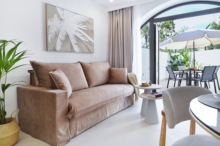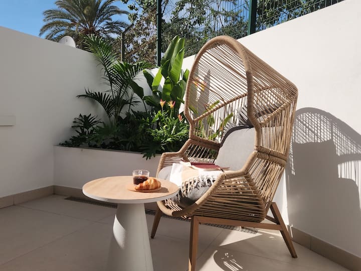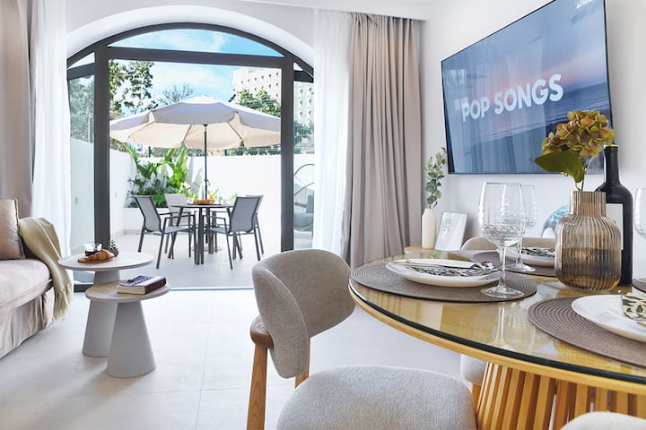 Luxusný apartmán s 1 spálňou Las Americas • Klimatizácia • Vyhrievaný bazén • Terasa