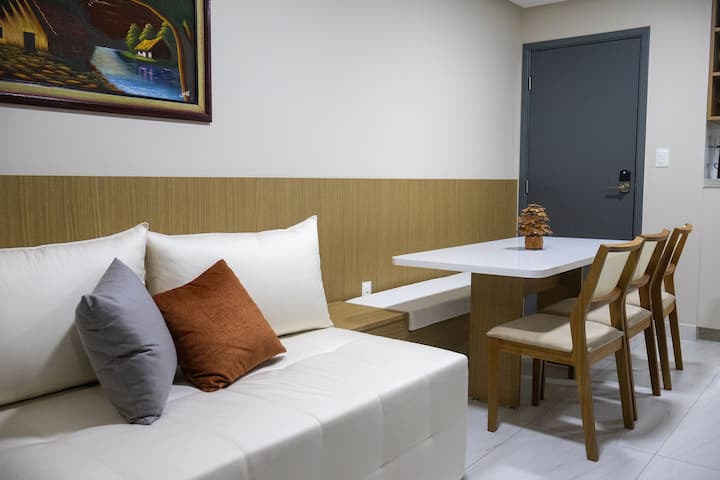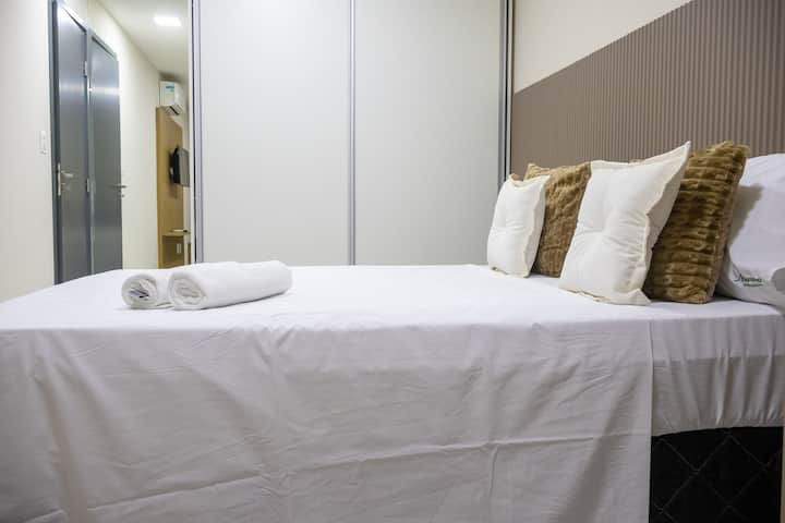 Dvojlôžkové apartmá: útulná spálňa s manželskou posteľou, televízorom, klimatizáciou, šatníkom s vešiakmi, veľkým zrkadlom a priestorom na domácu kanceláriu. Všetko navrhnuté pre vaše pohodlie a organizáciu. Všetko navrhnuté pre vaše pohodlie a organizáciu.