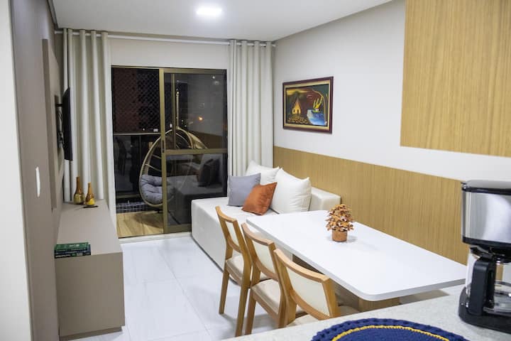 Zažite špeciálne chvíle v tomto apartmáne v Mardisa Design. Dve klimatizované spálne s televízorom, jedna s manželskou posteľou a druhá s dvoma samostatnými lôžkami, ponúkajú ideálny priestor pre rodiny alebo skupiny. Obývacia izba je útulná, s pohovkou a stolom, kde sa môžete zhromaždiť s tými, ktorých milujete, a balkón poskytuje ideálny priestor na oddych. Plne vybavená kuchyňa vám umožní pripravovať si jedlo, ako keby ste boli doma. Tu sa praktickosť a pohodlie spájajú, aby bol váš pobyt jedinečný.