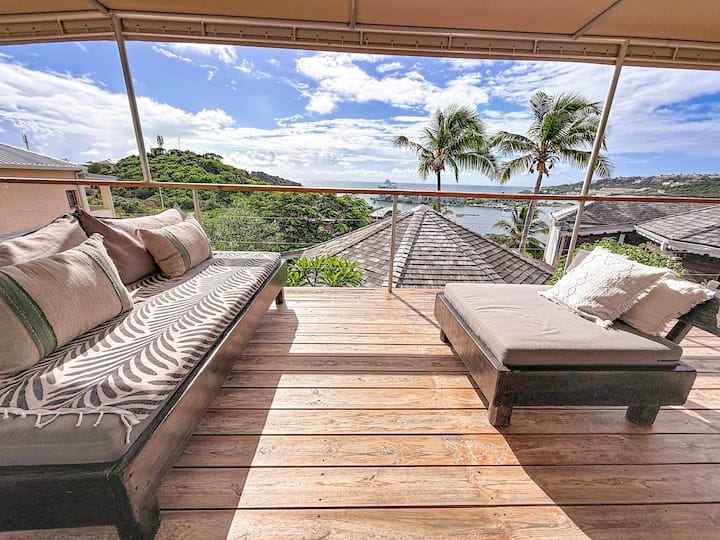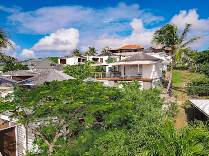 Villa Olive, priestranný kokón, výhľad na more na Oyster Pond