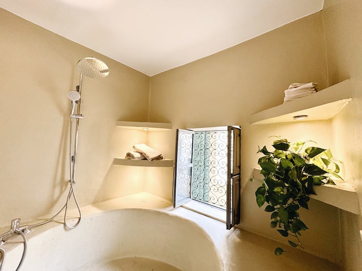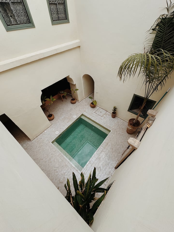 Umelecká izba s manželskou posteľou v Riad Zaman s bazénom!