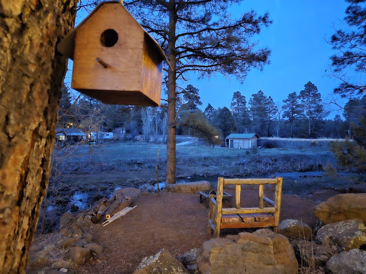 Vitajte v chate Pine Kissed Cabin 🌲 Útulné útočisko pri potoku v Pinetop-Lakeside, premyslene navrhnuté pre spojenie, pohodlie a pokojné chvíle v horách.