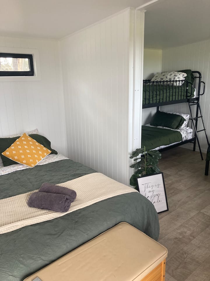 Nachádza sa medzi eukalyptovými stromami na pokojnej rodinnej farme uprostred nádhernej austrálskej krajiny, kde sa pasú ovce a voľne žijúce zvieratá, a len kúsok jazdy od historického mesta Maryborough. Je to ideálny výlet pre malé skupiny, ktoré hľadajú dobrodružstvo a trochu luxusu v prírode.