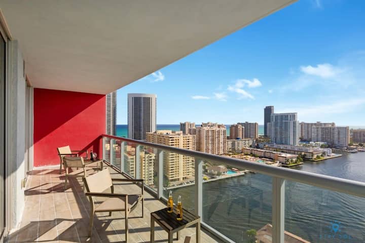 Apartmán s nádherným výhľadom, bazénom a posilňovňou v blízkosti pláže