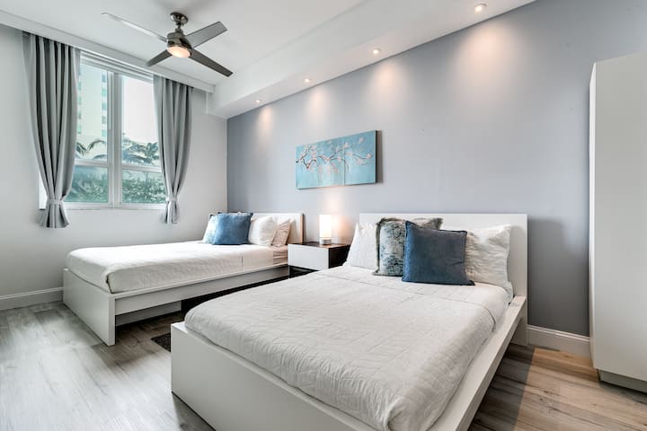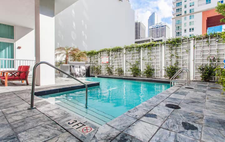 Ubytujte sa v našej modernej a exkluzívnej výškovej budove Loft Downtown v centre mesta Miami, ktoré je bohaté na kultúru. Luxusné prostredie, vybavenie v štýle rezortu a nádherný panoramatický výhľad na záliv Biscayne Bay, Atlantický oceán a panorámu mesta. Osviežujúci bazén, termálny vodopád, klubový salónik, dobre vybavená posilňovňa, malebné záhrady a tropické terénne úpravy. Plne vybavená kuchyňa, vysokorýchlostné Wi-Fi, pridelené parkovacie miesto. Hostia budú mať prístup ku všetkému, čo uvidíte na fotkách.