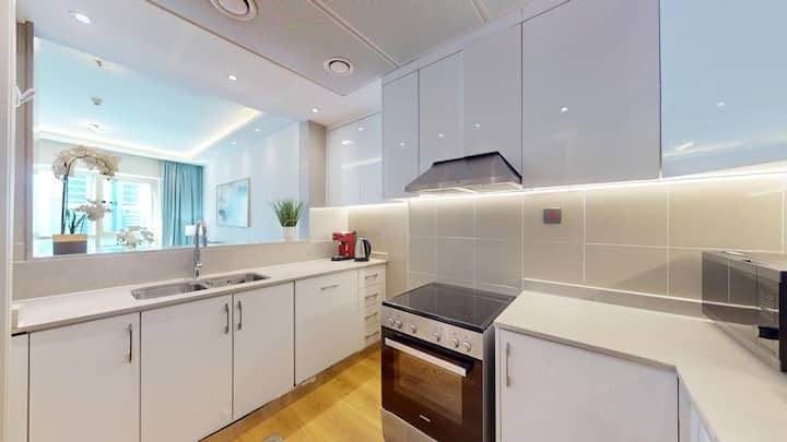 Tento moderný apartmán s dvoma spálňami je elegantne zariadený a je ideálny pre páry aj skupiny cestujúcich. Je navrhnuté s ohľadom na pohodlie, má štýlový dizajn a všetko potrebné pre relaxačný pobyt. Vychutnajte si najmodernejšie vybavenie budovy, praktické vybavenie a vysokorýchlostné pripojenie Wi-Fi s priemernou rýchlosťou 250 Mb/s, ktoré zabezpečia pohodlie a pripojenie počas celej návštevy.