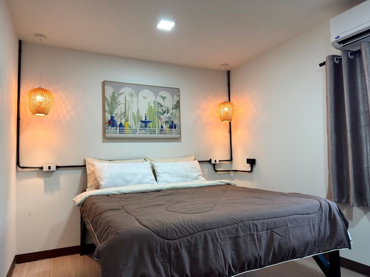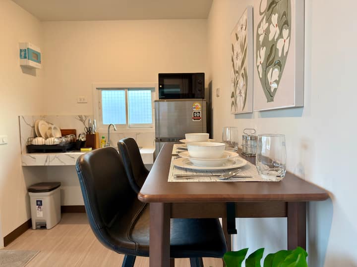 Moderný bungalov s 1 spálňou, pracovným priestorom a 5 minút jazdy od pláže
