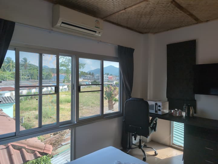 Výhľad na hory a mesto neďaleko pláže s bezplatným coworkingom