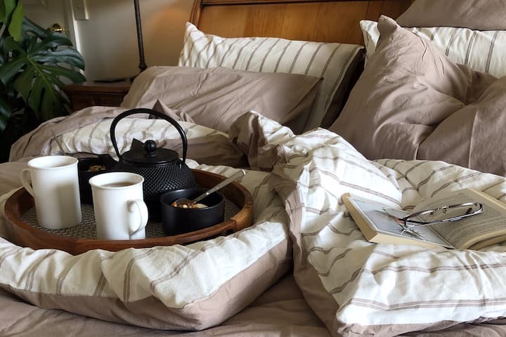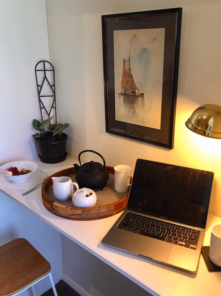 Súkromný štúdiový apartmán pre hostí, vlastná kúpeľňa a kuchynský kút s nádherným vidieckym výhľadom na mokrade.