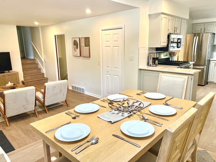Vitajte vo svojom domove, ďaleko od domova! Tento krásne navrhnutý 3-spálňový dom s 1,5 kúpeľňou na troch úrovniach ponúka dokonalú kombináciu pohodlia a štýlu. Náš domov je premyslene zariadený všetkým, čo potrebujete na relaxačný a nezabudnuteľný pobyt, a môže s ľahkosťou ubytovať až 6 hostí.