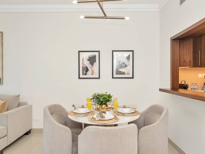 Náš svetlý, priestranný, štýlovo zariadený apartmán má ideálnu polohu v Dubaji.