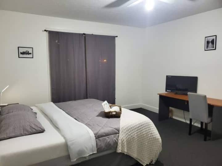 Vitajte vo svojom útulnom domove ďaleko od domova v Louisville! Prime Louisville Location: Pár krokov od centra mesta, Churchill Downs, UofL, Airport & Expo Center. Táto vlastná izba má luxusnú manželskú posteľ King, ktorá je ideálna na pohodlný a pokojný nočný spánok. Izba sa nachádza v našom očarujúcom dome len pár minút od Churchill Downs, University of Louisville a centra mesta. Budete mať tiež prístup do čistej spoločnej kúpeľne. Užite si našu plne vybavenú kuchyňu a krásnu verandu počas pobytu.