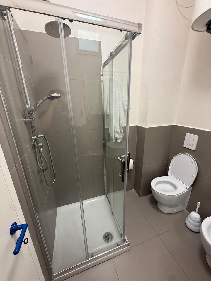 Súkromná kúpeľňa je zrekonštruovaná a funkčná, s moderným sprchovacím kútom, umývadlom na dosku a kompletnou sanitárnou keramikou.Hostia nájdu čisté uteráky, bezplatné toaletné potreby a sušič vlasov.