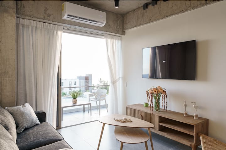 Výhľad na oceán + bazén | Priestranný apartmán s 2 spálňami a 2 kúpeľňami El Zonte