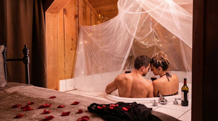 Romantická chata v lese s vírivkou