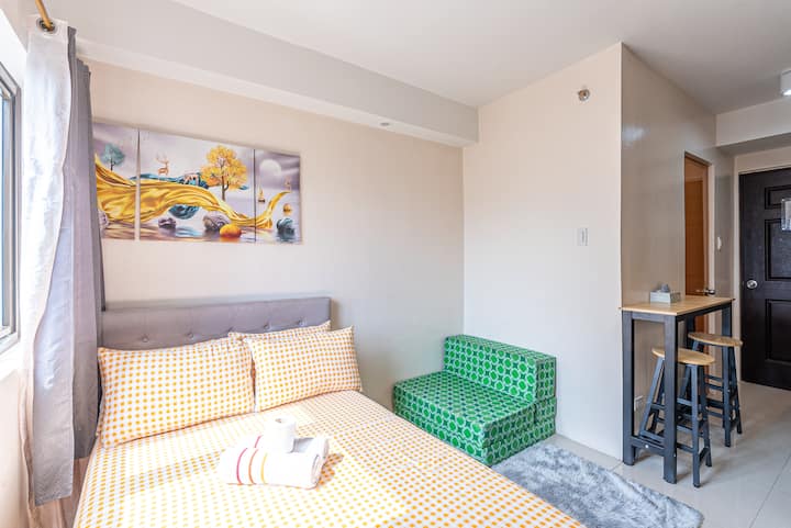Tento apartmán sa nachádza pozdĺž ulice MJ Cuenco Avenue a ocitnete sa v centre všetkých najlepších nákupných destinácií, hlavné obchodné štvrte a pulzujúci mestský život sú priamo pri vašich dverách.