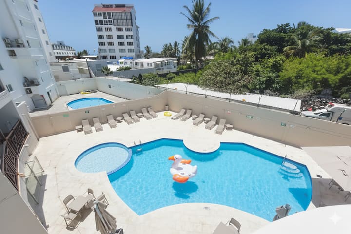 Útulný apartmán s bazénom 1 blok od pláží