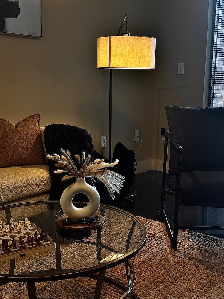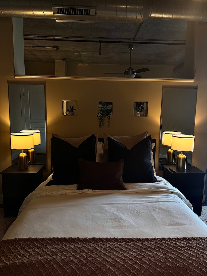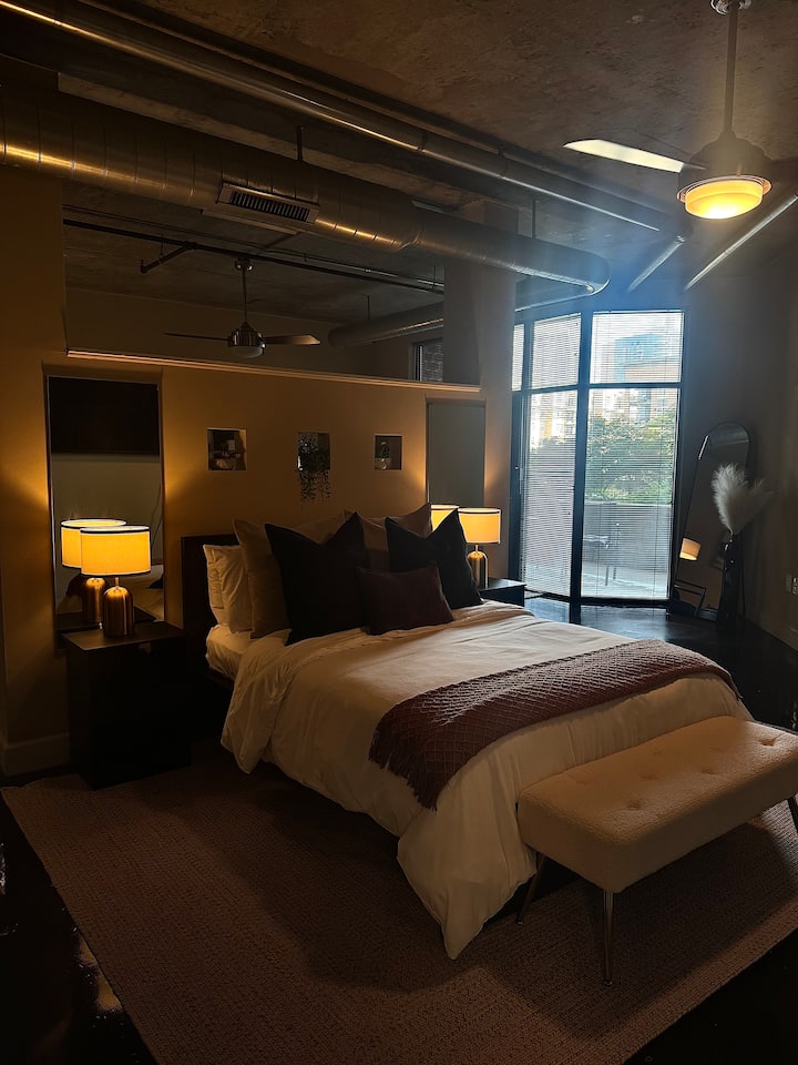 Vitajte vo svojom elegantnom, šik útočisku v štvrti Uptown Charlotte, Fourth Ward – ideálnom na romantický výlet, víkend s priateľmi alebo štýlový pobyt osamote. Premyslene navrhnuté pre pohodlie a štýl, len pár minút od reštaurácií, pivovarov a nočného života v South Ende.