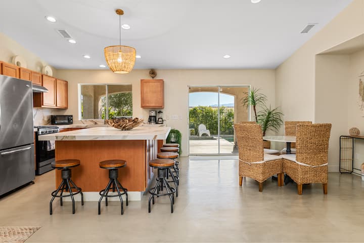 Dokonale umiestnené len pár minút od atrakcií Palm Springs: 13 mi od Agua Caliente Casino a centra mesta, 15 mi od letiska, 25 mi od Joshua Tree NP.