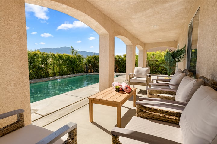 Vstúpte na súkromný dvor a vychutnajte si krásny výhľad na pohoria San Jacinto a San Bernardino, kým si užívate bazén so slanou vodou a vírivku. Táto oblasť je určená na relaxáciu aj zábavu.