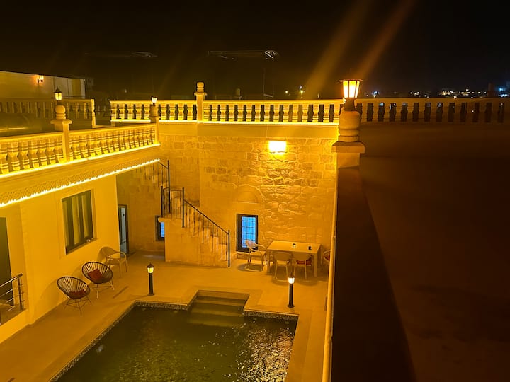 Kamenný kaštieľ s bazénom a tureckými kúpeľmi