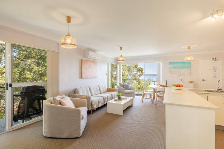 • predný balkón s nádherným výhľadom na vodu Nelson Bay,